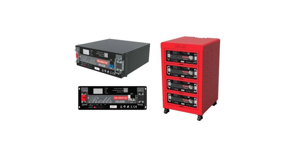 Optional Rolls ESS modular cabinet (shown) *Install up to 8 x S48-100LFP ESS units per cabinet